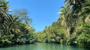 Pengunjung akan disuguhi pemandangan hutan hijau, tebing kapur, dan air jernih. Vegetasi tepi sungai terdiri dari pepohonan tinggi, semak tropis, dan beragam tanaman endemik. Beberapa bagian sungai menyerupai kanopi alami, sehingga aktivitas susur sungai terasa seperti berada di tengah Amazon kecil.